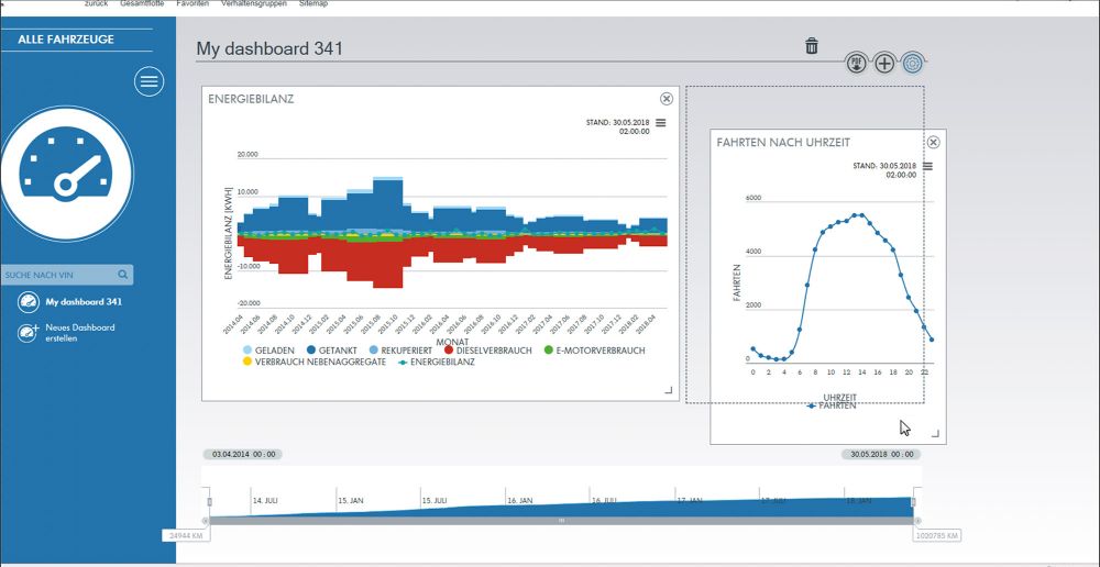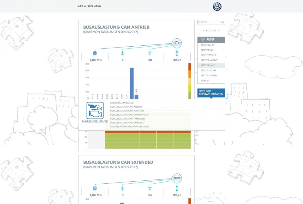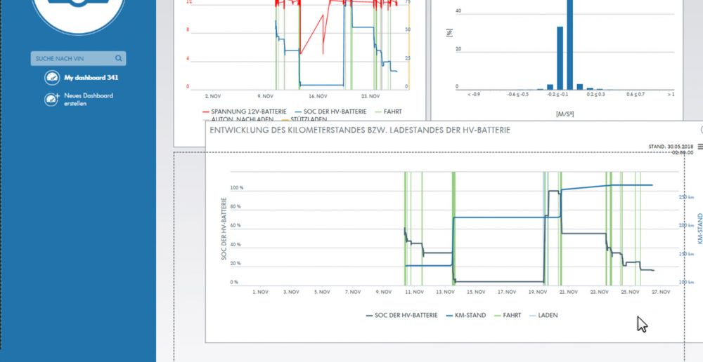 Für die Darstellung selektierten wir die emotional vorteilhafte und gut darstellbare Auswertungen. Diese wurden in eine Tablett-freundliche Oberfläche und als unabhängige Standalone-Anwendung umgesetzt. Die Anbindung an Telemetrie-DWH erfolgte über eine schmale Datenschnittstelle, was den Betrieb außerhalb von OEM Intranet ermöglichte.
